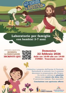 Sono invitate in modo particolare le famiglie con bambini dai 3 ai 7 anni. L’occasione propizia per accogliere i bimbi della scuola dell’infanzia e accompagnare i bambini del primo anno della scuola primaria che, a partire dal prossimo, inizieranno il catechismo. Un tempo di gioco, divertimento e laboratori esperienziali – da vivere insieme grandi e piccini, con fratelli più grandi o più piccoli – ma anche di riflessione e preghiera. Possibilità di concludere insieme, alle ore 19.15, con un semplice apericena offerto dall’équipe all’interno della medesima struttura del Vescovado nuovo in Cuneo – Via Amedeo Rossi 28 – dove si svolgerà l’iniziativa.