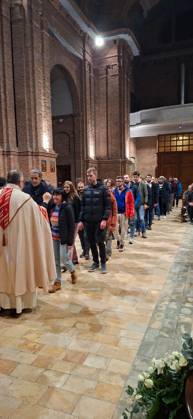 La serata si è così trasformata in un tempo di grazia, in cui ogni coppia ha potuto fermarsi, ascoltare, pregare, guardarsi e ritrovarsi. In un mondo spesso frenetico, la celebrazione ha offerto uno spazio di profondità e intimità, e – come ha ricordato don Gilberto – ci ha invitati a riscoprire uno sguardo reciproco capace di riflettere quello di Dio su di noi, quello “sguardo” capace di dire all’altro: tu sei prezioso ai miei occhi.