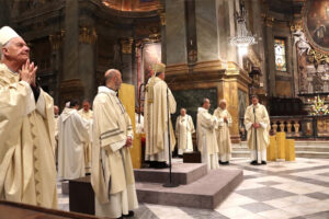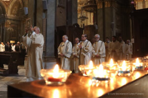 Non vi nascondo la mia gioia ed attesa di questo particolare momento di Chiesa in cui, in occasione della benedizione degli oli per i catecumeni e per i malati e la consacrazione del Crisma, vescovo, sacerdoti e diaconi siamo radunati quasi al completo. Sentiamoci uniti anche a chi è assente per ragioni di malattia, di distanza, o per altri motivi. Vorrei che ci sentissimo uniti anche a tutti coloro che hanno lasciato il ministero: sono nostri fratelli che non possiamo dimenticare, mai.