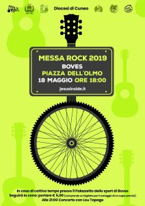 La Messa Rock quest’anno sarà celebrata sabato 18 maggio alle 18 a Boves nel palazzetto dello sport invece che in piazza dell’Olmo a causa del tempo avverso. La Messa è promossa dall’equipe della Pastorale Giovanile insieme alla parrocchia di Boves.