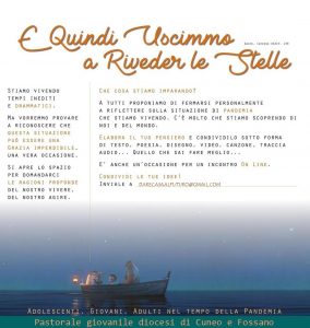 Le riflessioni possono poi essere condivise attraverso i mezzi di comunicazione “social” e diventare anche una possibile traccia per un incontro “online”. A tal proposito clicca qui per le modalità
