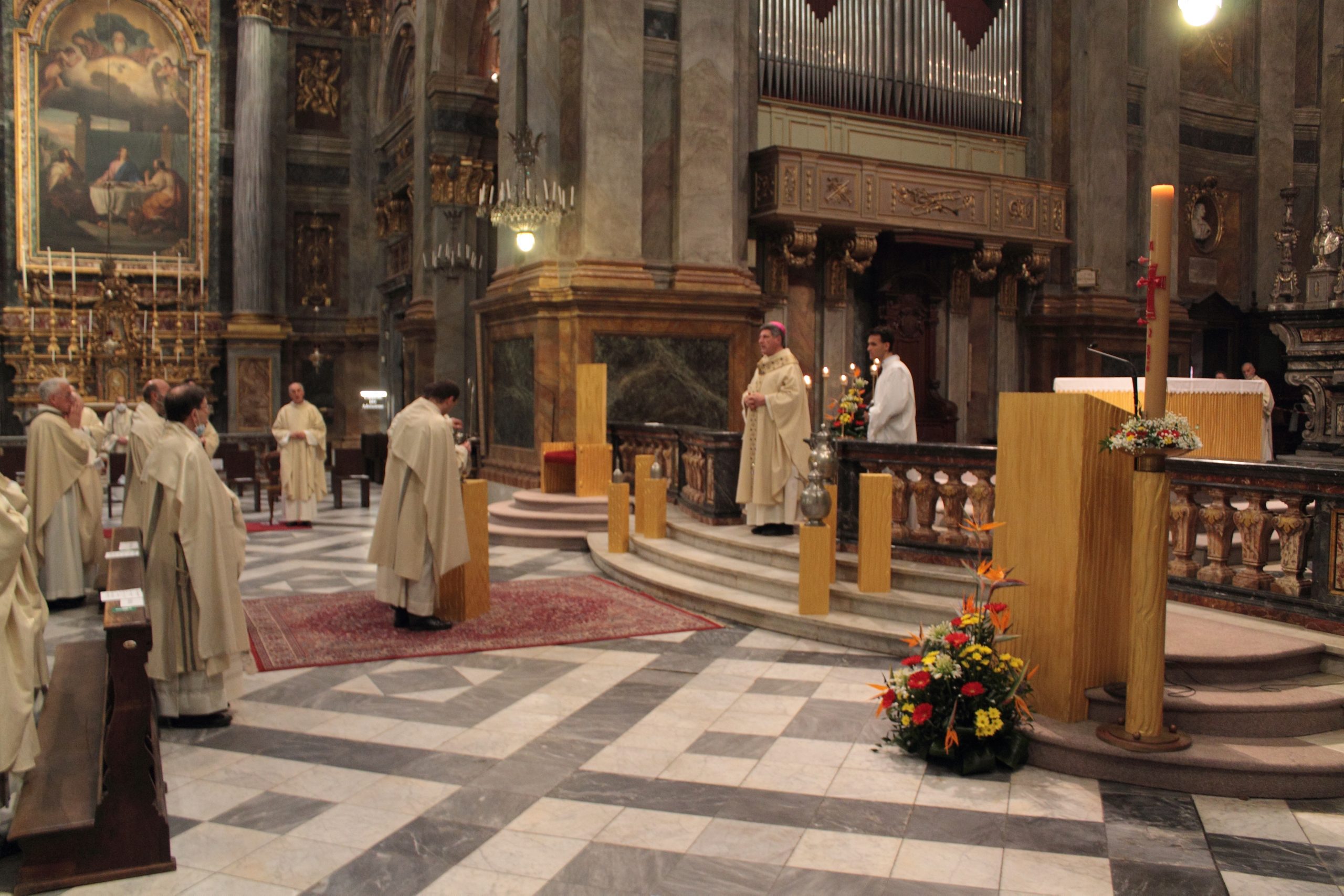 È una celebrazione particolare, quella che stiamo vivendo, dove l’attenzione e la preghiera è incentrata su di noi, vescovi, preti e diaconi. Abbiamo ricevuto gradi diversi del medesimo Sacramento dell’Ordine solamente per Grazia di Dio. Dio ci ha chiamati, ci ha scelti, ci custodisce, ci ama. È lui il garante della nostra fedeltà e noi siamo nelle sue mani. Forse non ce ne rendiamo conto a sufficienza di questa predilezione totalmente gratuita.