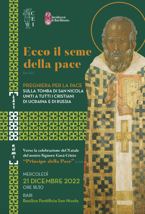 In un momento di grandi conflittualità, con una escalation terribile nel cuore dell’Europa, la Chiesa in Italia vivrà un momento di preghiera per la pace sulla tomba di San Nicola, santo venerato sia dai Cattolici sia dagli Ortodossi (e molto a cuore al popolo ucraino e a quello russo).