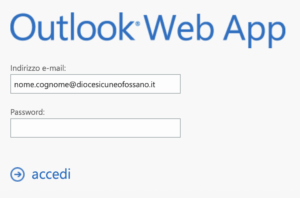 per accedere da web alle caselle di posta nominative occorre modificare solo l’indirizzo (da @diocesicuneo.it a @diocesicuneofossano.it)