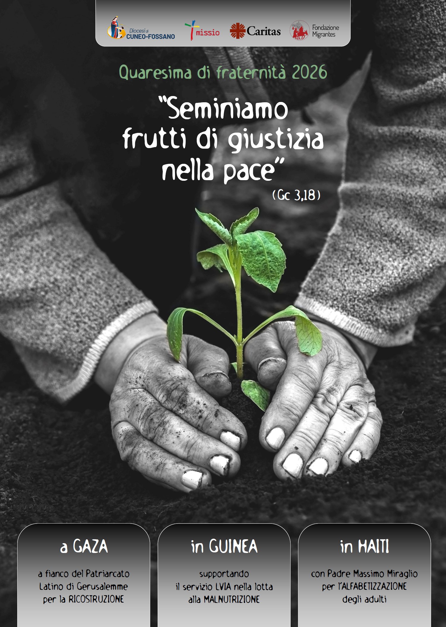 Il frutto della colletta e di ogni altra iniziativa per la Quaresima di fraternità e per i cristiani di Terra Santa (Venerdì Santo) dovrà essere consegnato dai parroci in Curia a Cuneo possibilmente entro il mese di aprile 2026. Si comunica che sono stati consegnati e raccolti 35 mila euro per la Quaresima 2025. Accanto all’elemosina come opera quaresimale, come ogni anno proponiamo la preghiera per i cristiani perseguitati e martiri nel mondo, che quest’anno si terrà a Boves nella chiesa parrocchiale martedì 24 marzo, giorno del martirio di San Oscar Romero.