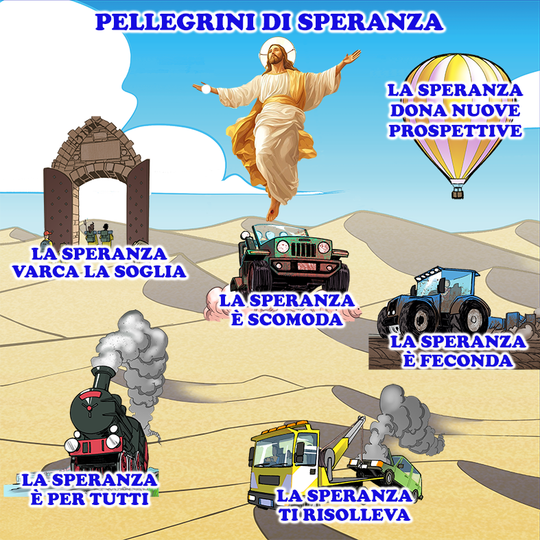 I nostri amici Giusy e Leo, conosciuti nel tempo dell’Avvento e del Natale, dopo essere stati buoni Allievi di Speranza alla scuola di grandi artisti, si mettono ora essi stessi in cammino come PELLEGRINI DI SPERANZA.