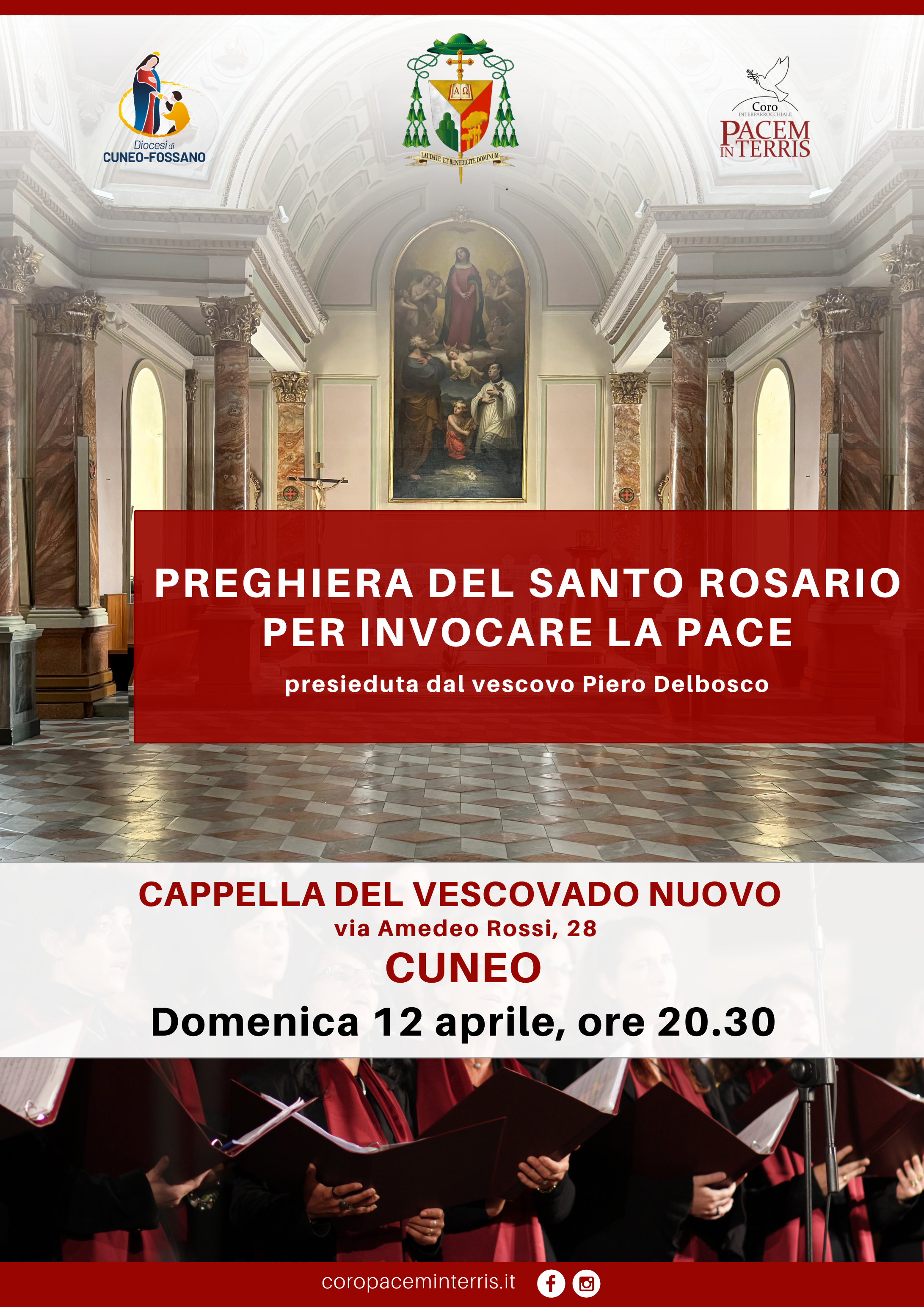 Preghiera del Santo Rosario per la paceVescovado nuovo di Cuneo domenica 12 Aprile Descrizione: Inizio: 12/04/2026 20:30 Fine: 12/04/2026 21:30 Categorie: . Attività diocesane ., Vescovo Città: Cuneo Regione: Piemonte Paese: Italia condividi su